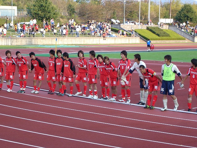 名古屋1-0磐田 【得点】〔名古屋〕78分:須藤 抜けるような青空の多治見運動公園での、サテライトの試合を観戦に行きました。 子ども会やどこかのサッカースクールともいえる子供集団があちこちで見える中・・・勝ちました! 前半は、互いに一進一退の攻防。 何度となく、西・西野に攻め込まれる場面もあったりしたのだが、秋田を中心とした3バックが要所要所でしめた。 川島のコーチングの声が場内に響き渡っていた。 津田・片山からのサイドからの攻撃もターゲットになる豊田が決め切れなかったりして、結局前半は0-0 後半の立ち上がりもお互いがいいとこ見せるも決めてがなく、そのまま終わるかと思った後半33分、須藤のミドルが決まり1-0に。このあとも追加点をあげるためにチャンスは作るがシュートまでいけず。 そのまま試合終了! これで、サテライトリーグ(Dグループ)はすべて終了。3位で終えました。 さらに、今年の対ジュビロ戦はリーグ戦・サテライト・PSMの5試合を4勝1分の好成績で何気に終わりました。(以前は苦しんでいたのにね) 秋さん、万歳をやる気満々ですw このあとの「須藤コール」には、須藤もノリノリw